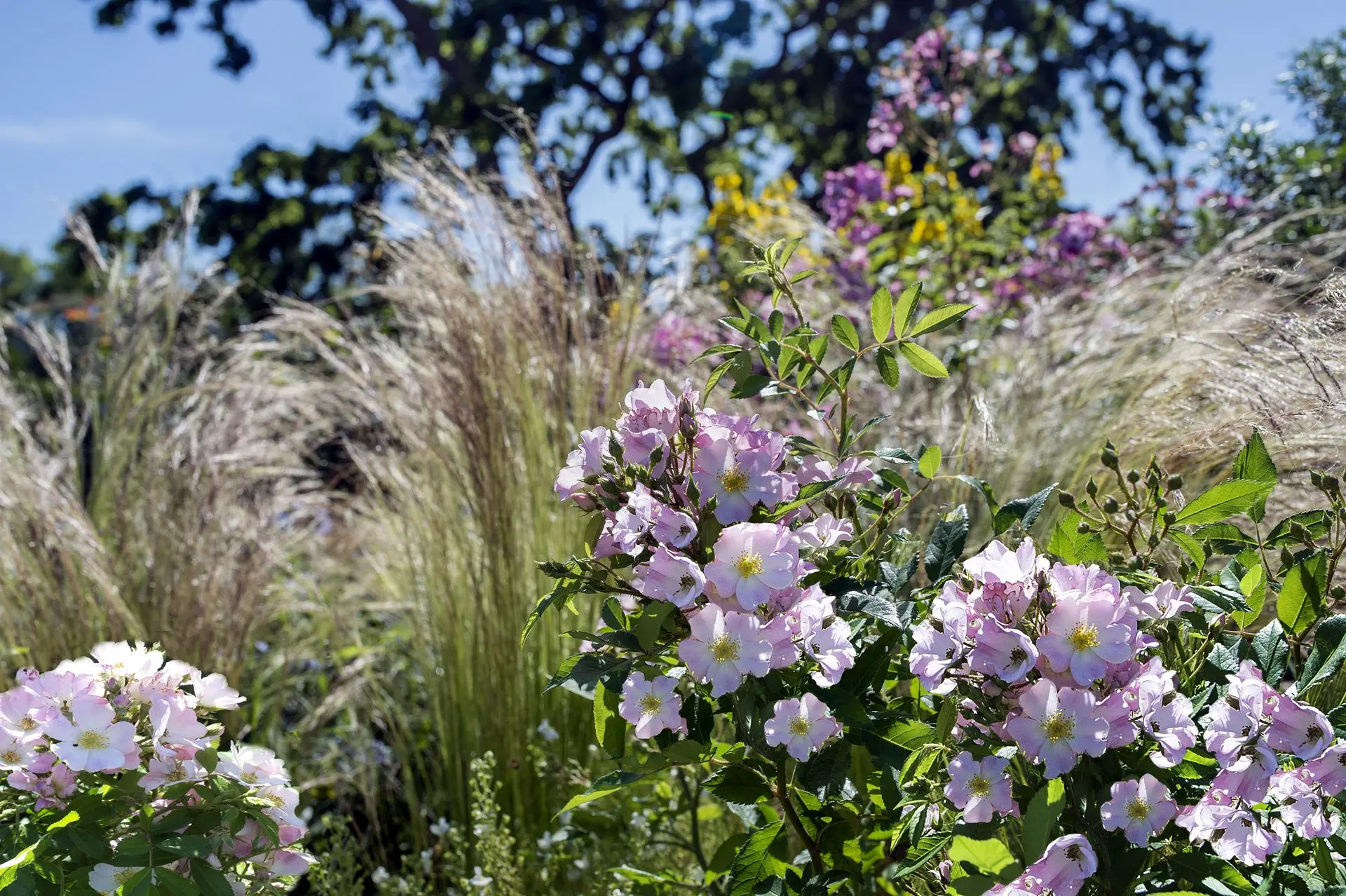 Arbuste à fleurs simples rose tendre